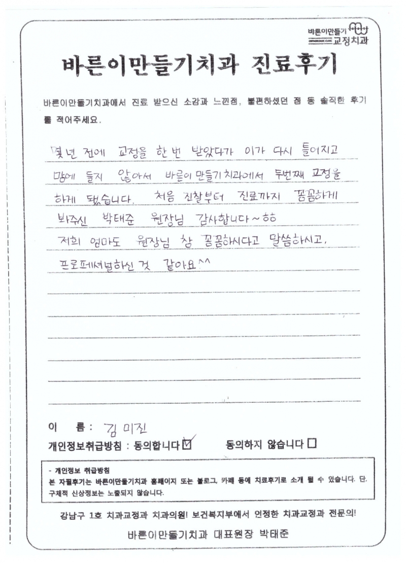 교정치료내용 : 위아래 부분교정 (상악 : 세라믹교정 하악 : 2D교정)