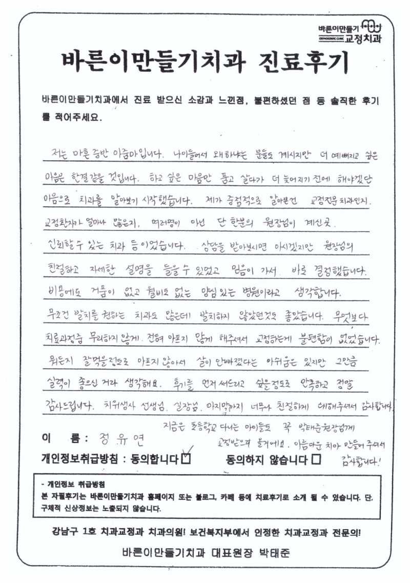 교정치료내용 : 위아래 전체교정 (클리피씨 교정)