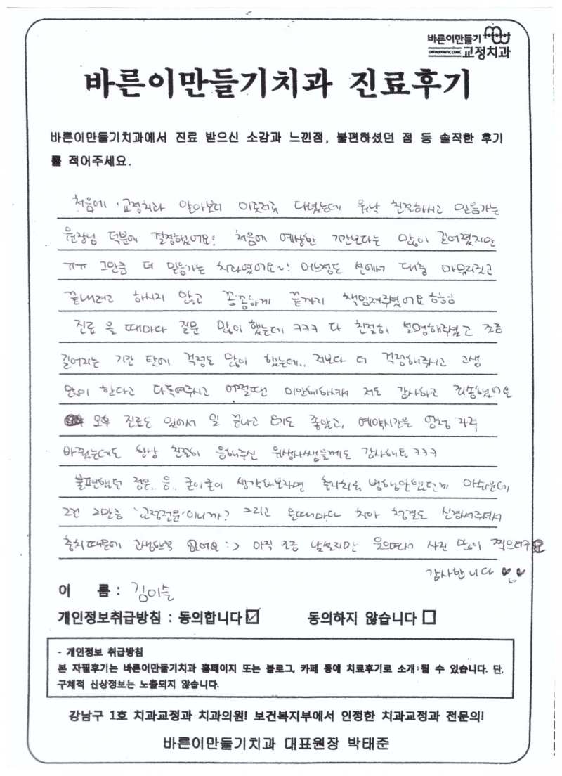 김이슬님 치아교정후기