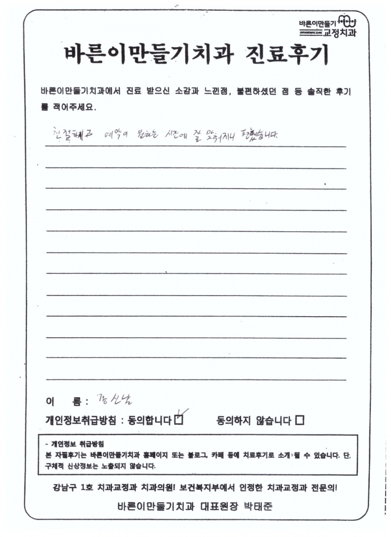 강신남님 치아교정후기