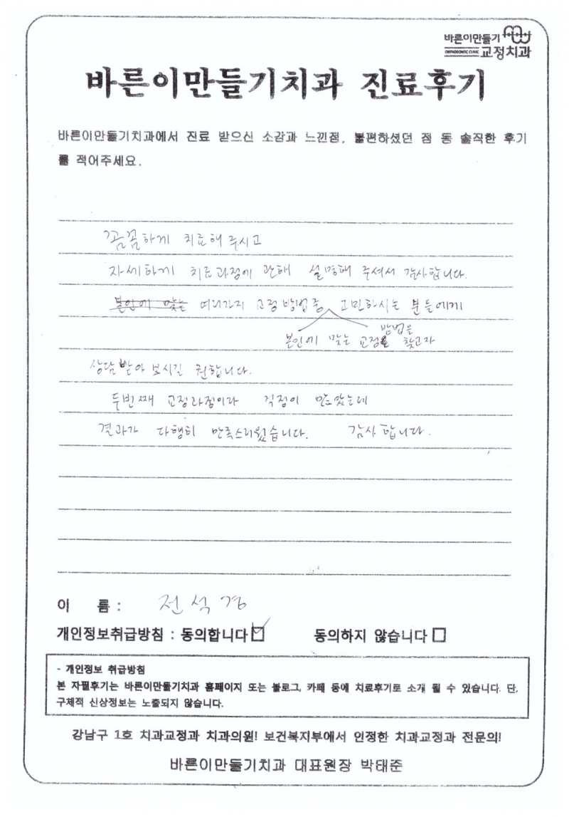 전석경님 치아교정후기