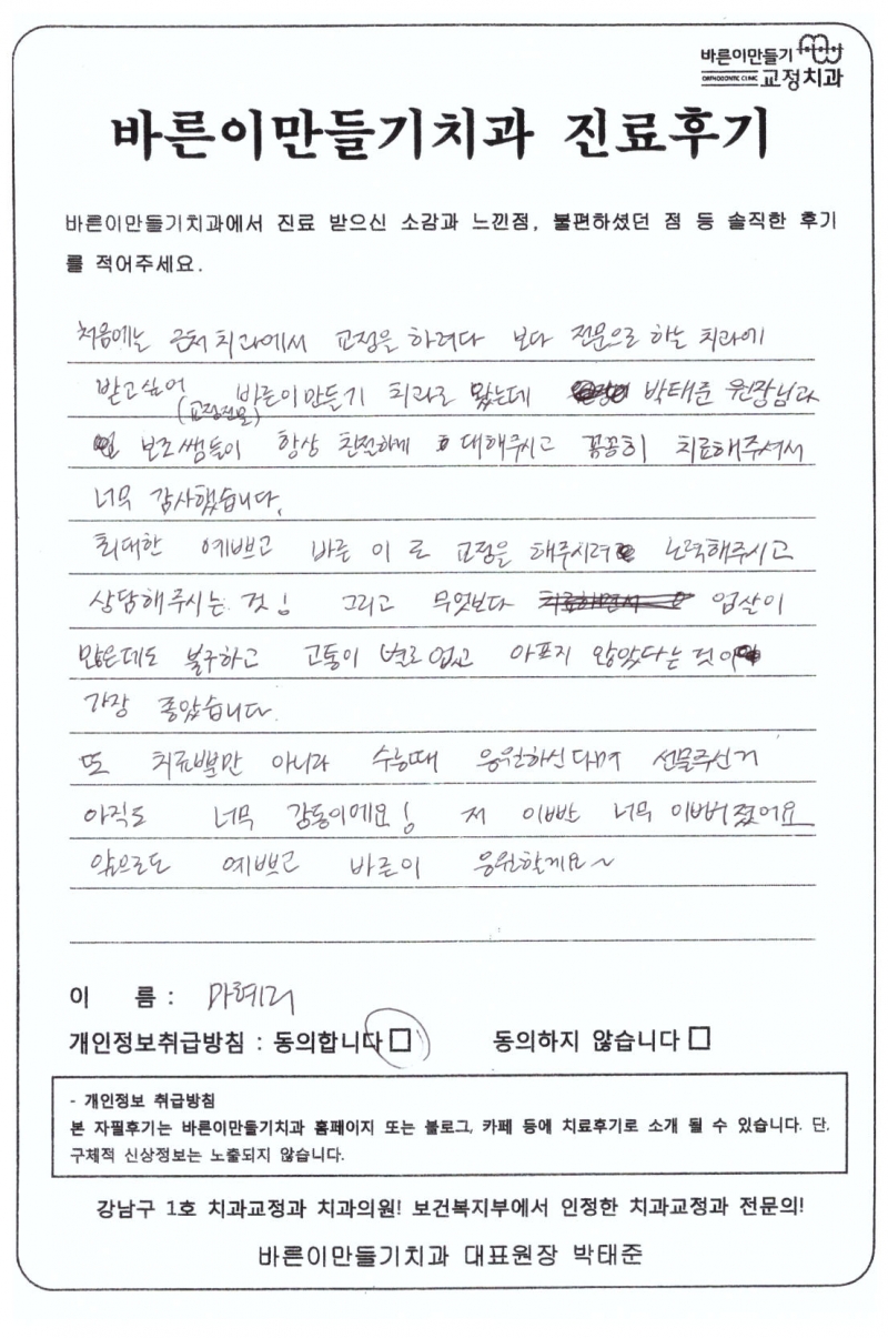 마혜리님 치아교정후기