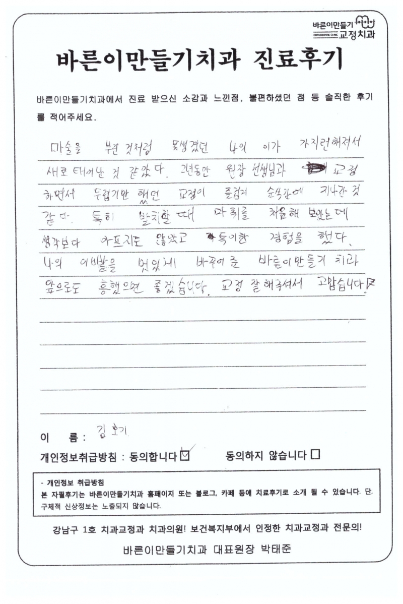 김호기님 치아교정후기