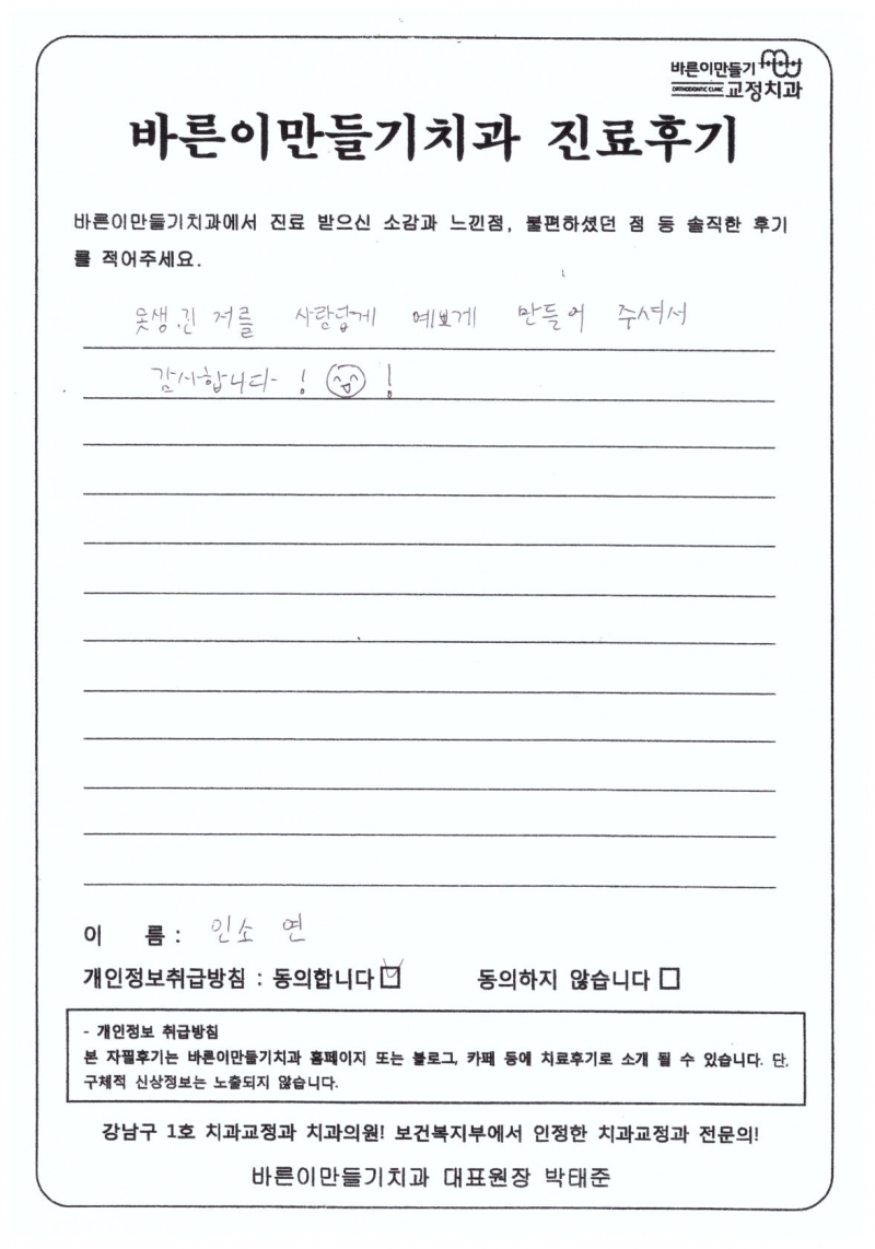 교정치료내용 : 위아래 전체교정 (클리피씨 교정)