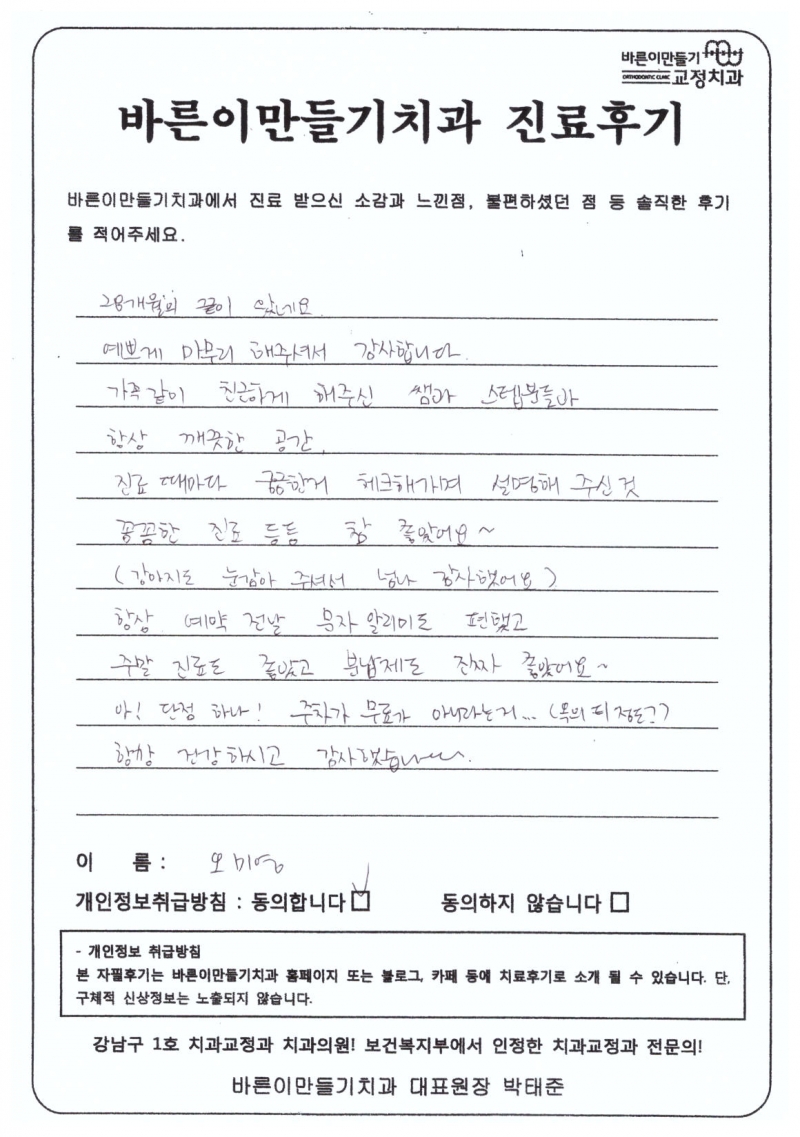 교정치료내용 : 위아래 전체교정 (클리피씨 교정)