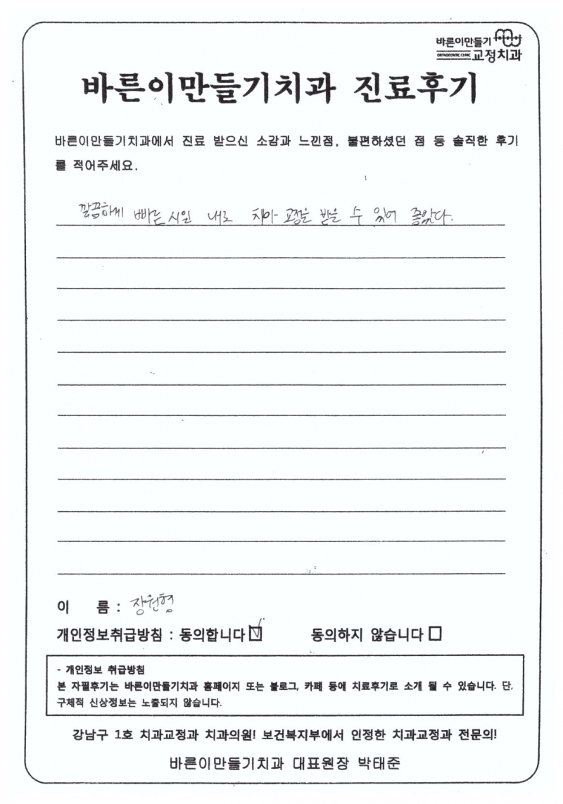 장원형님 치아교정후기