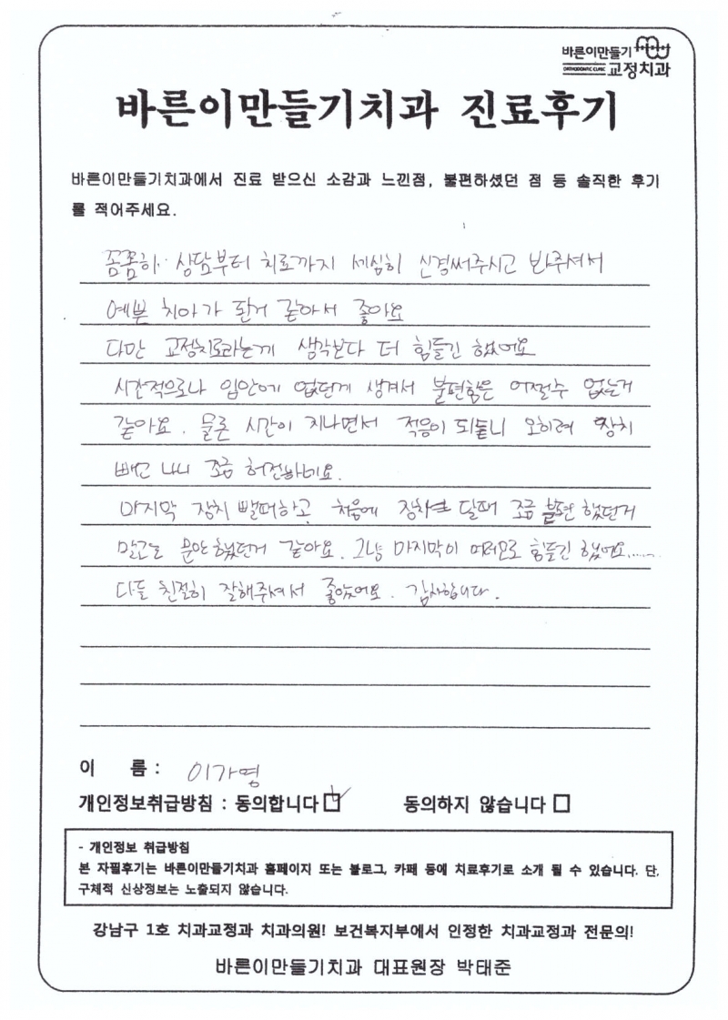 교정치료내용 : 위아래 전체교정 (클리피씨 교정)