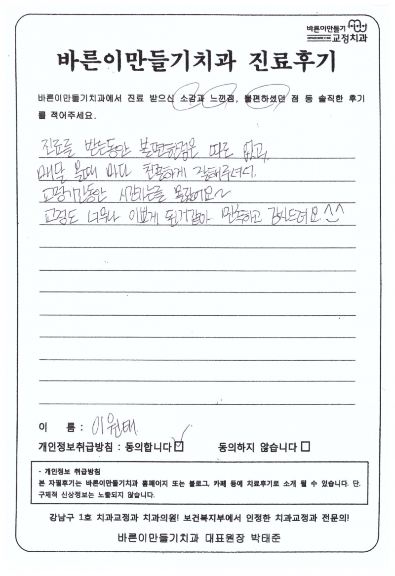 이원태님 치아교정후기