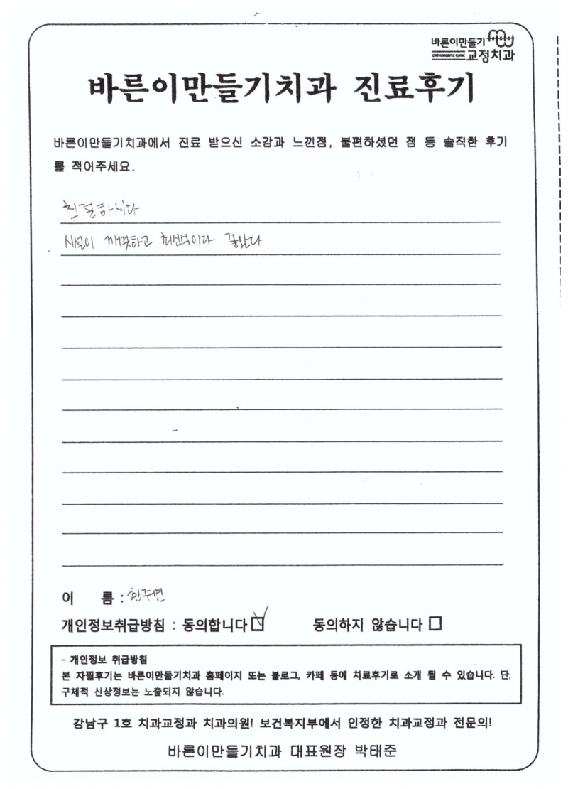 한주연님 치아교정후기
