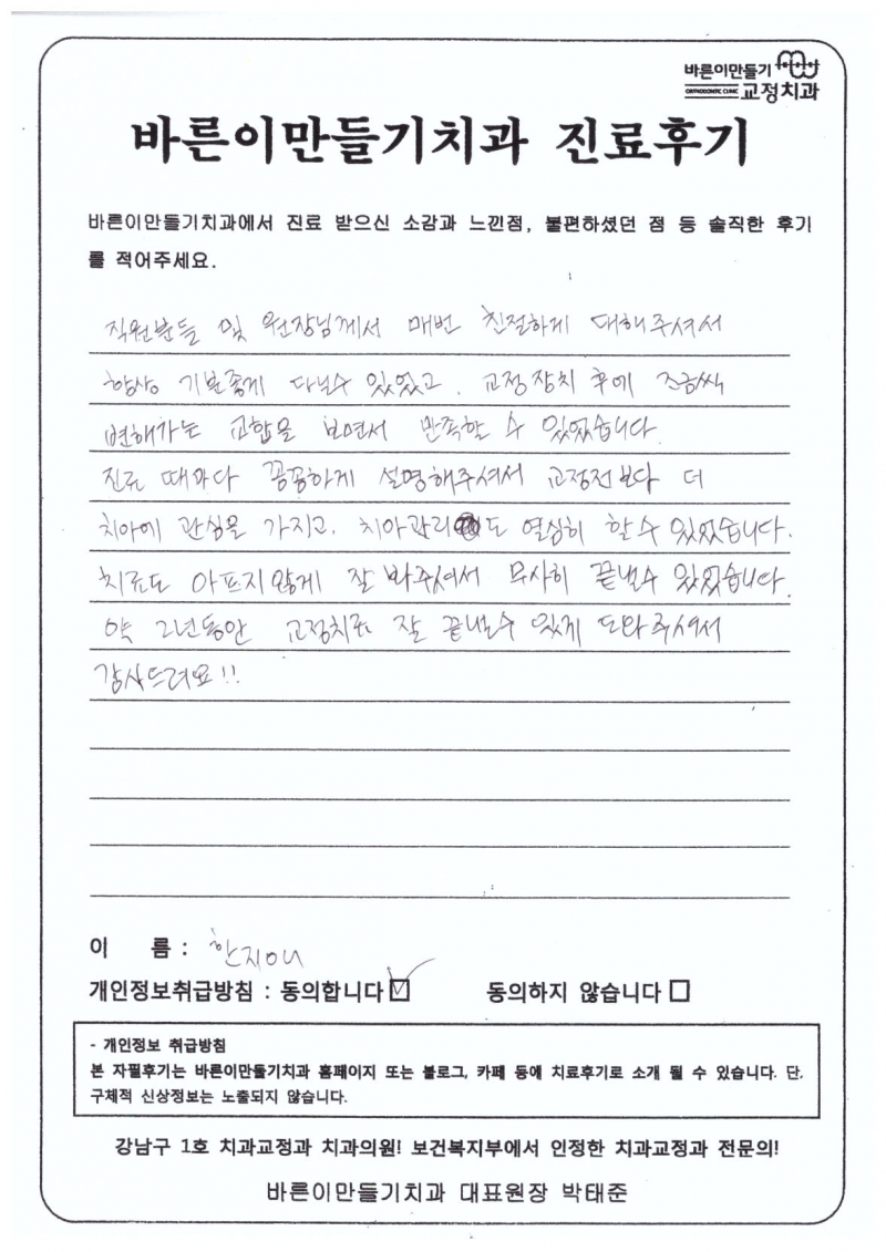 한지애님 치아교정후기