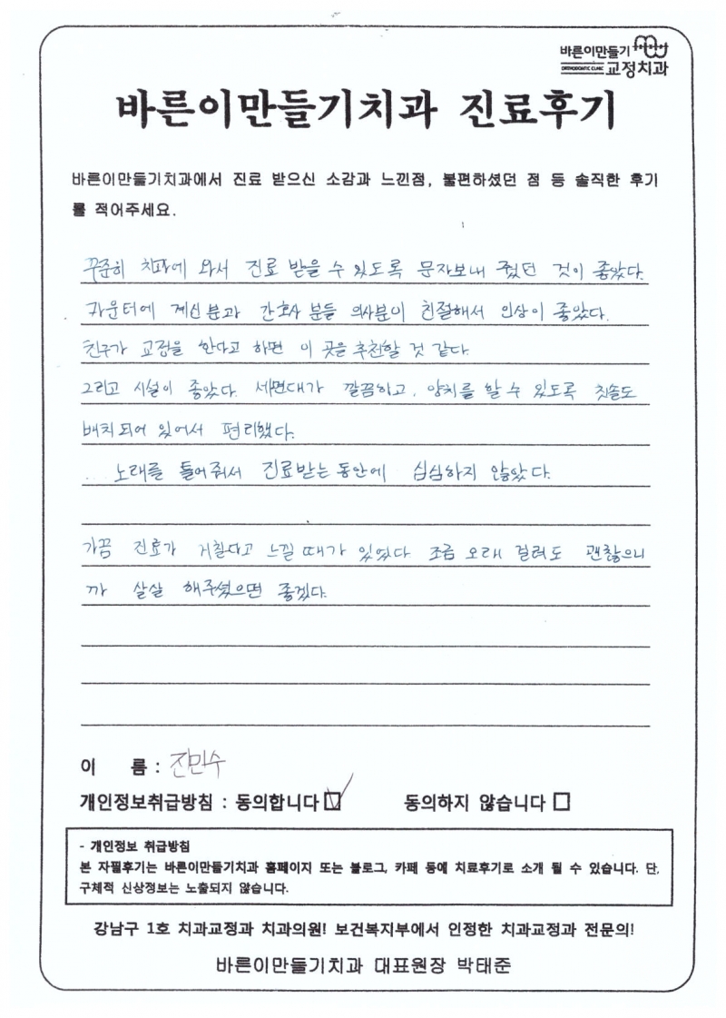 진민수님 치아교정후기