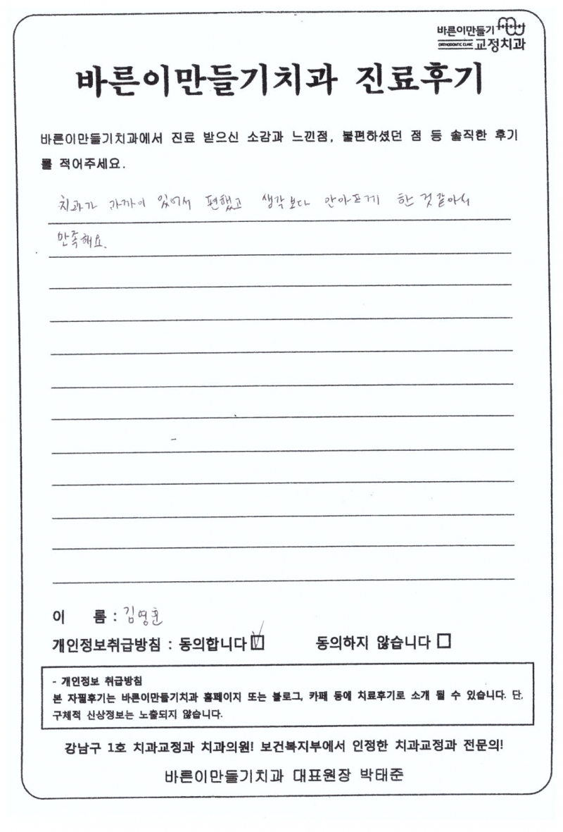 김영훈님 치아교정후기