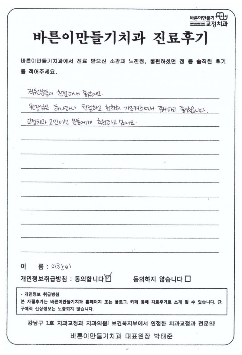 이한비님 치아교정후기