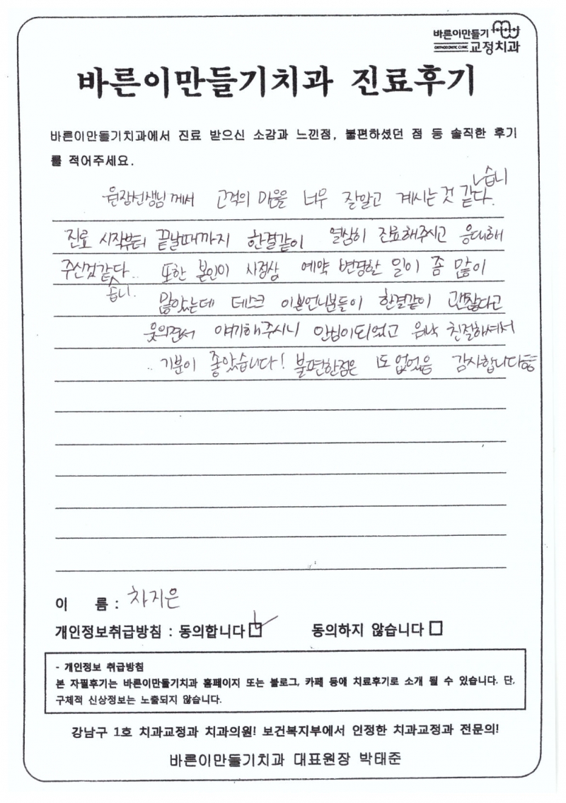 차지은님 치아교정후기