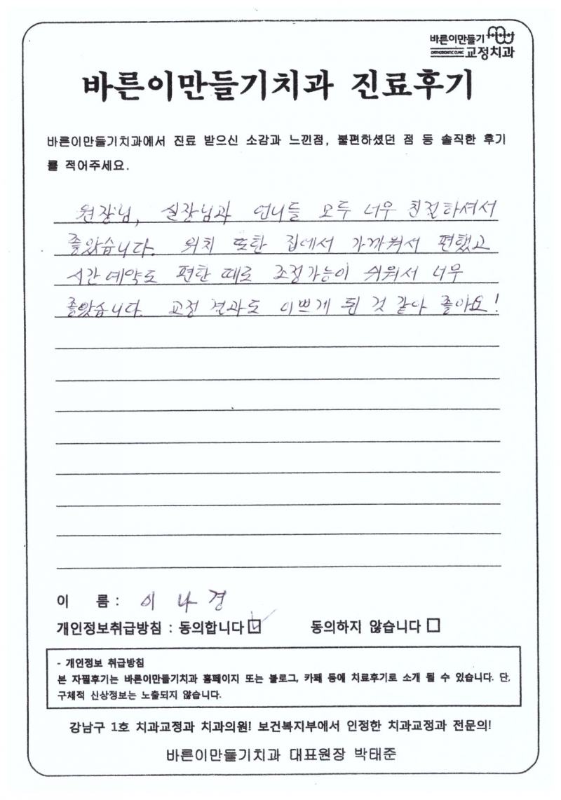 이나경님 치아교정후기