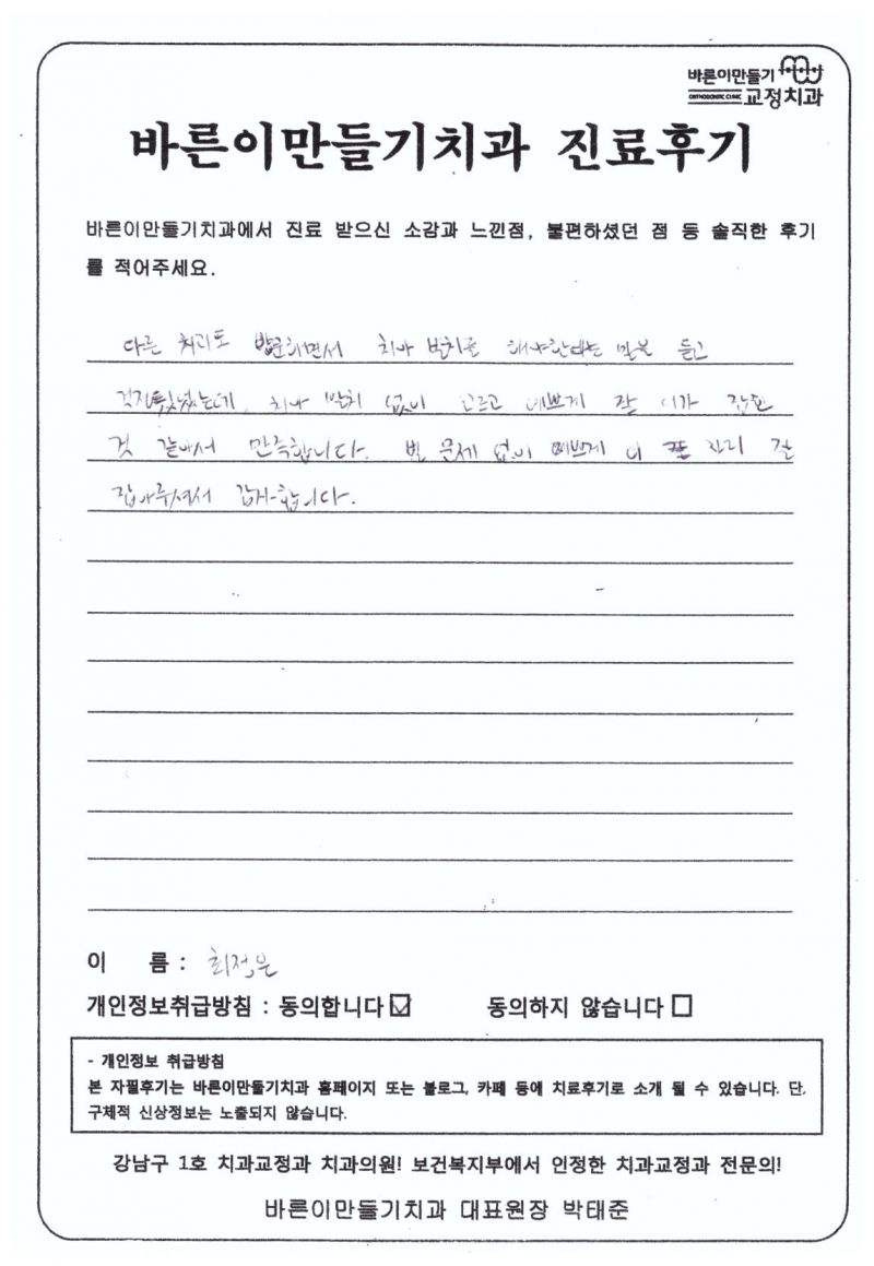 최정은님 치아교정후기